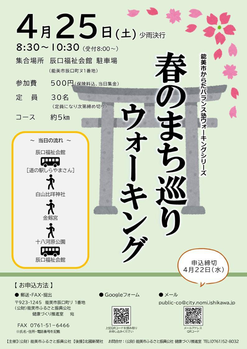 健康づくり推進室『春のまち巡りウォーキング』申込!!