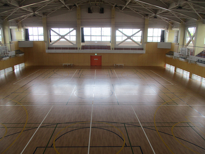 バレーボール2面、バスケットボール2面、バトミントン8面、トレーニングルーム