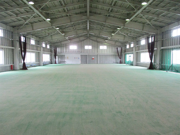 バレーボール2面、バスケットボーㇽ1面、バトミントン3面、Wi-Fi完備、冷暖房完備(有料)