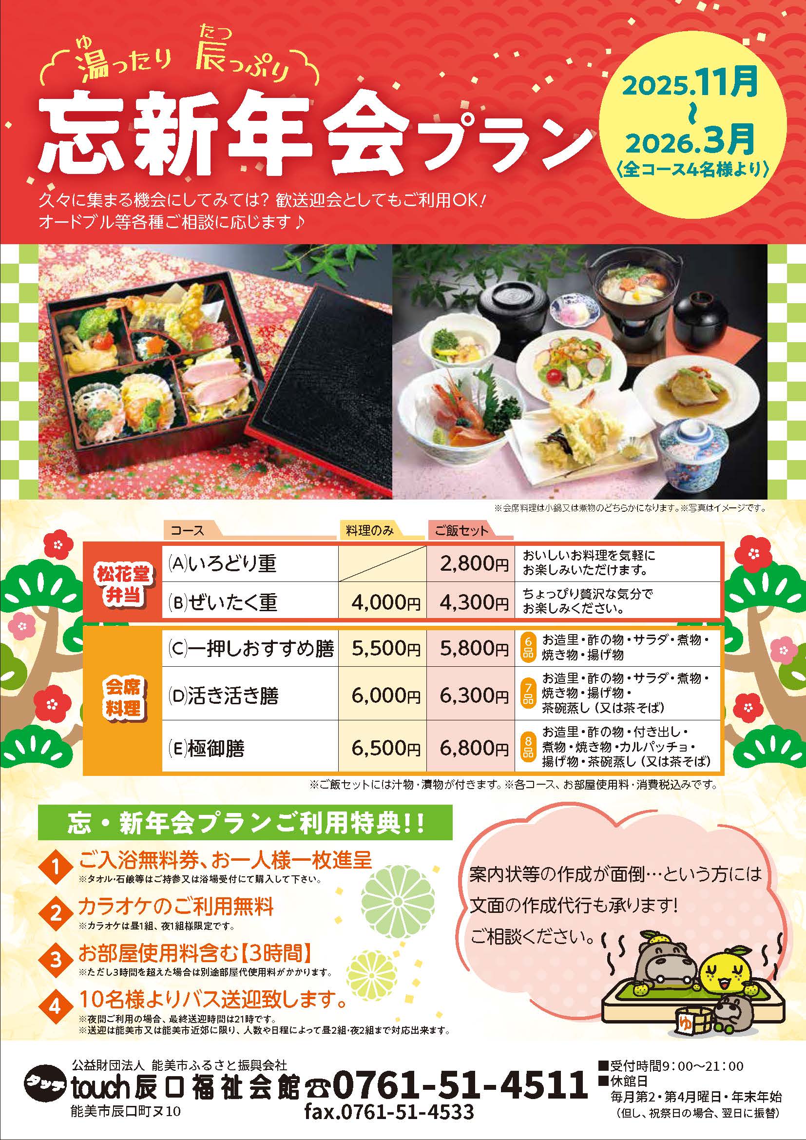| 入浴料金 大人200円 ・ 中人(小学生)100円 ・ 幼児(0歳~)40円 | |||